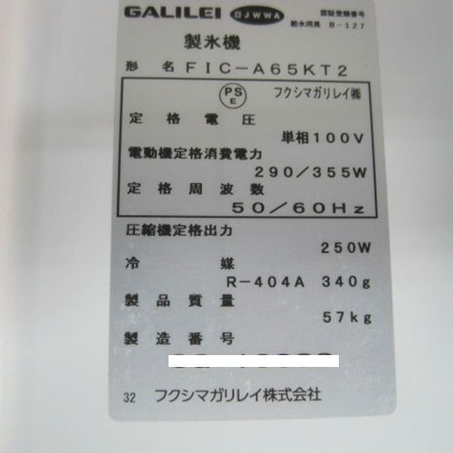 他の画像を見る 委託先様からの配送です。 【中古】製氷機 65kg フクシマガリレイ(福島工業) FIC-A65KV3 幅630×奥行550×高さ850 【送料別途見積】【未使用品】【業務用】【委託販売-k2c】 販売価格 ¥ 338,800 税込