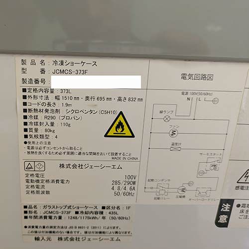 他の画像を見る 直接引取の場合は送料追加なし【宮崎店】 【中古】冷凍ショーケース JCM JCMCS-373F 幅1510×奥行695×高さ832 【送料別途見積】【業務用】【宮崎店在庫】 販売価格 ¥ 99,000 税込