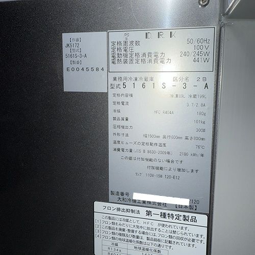 他の画像を見る 直接引取の場合は送料追加なし【名古屋千種店】 【中古】冷凍冷蔵コールドテーブル 大和冷機 5161CD-3-A 幅1500×奥行600×高さ800 【送料別途見積】【業務用】【名古屋千種店在庫】 販売価格 ¥ 188,320 税込