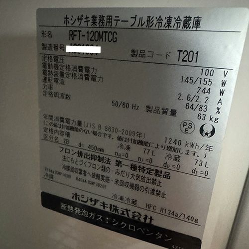 他の画像を見る 委託先様からの配送です。 【中古】冷凍冷蔵コールドテーブル ホシザキ RFT-150MTCG-ML 幅1500×奥行450×高さ800 【送料別途見積】【業務用】【委託販売-kkn】 定価 ¥ 1,117,600 (税込)のところ 販売価格 ¥ 108,900 税込