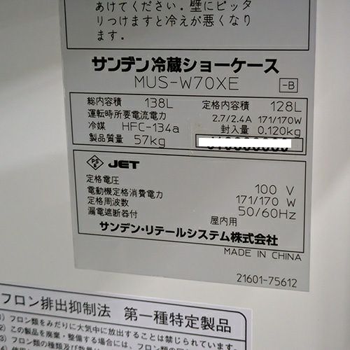 【中古】冷凍冷蔵機器