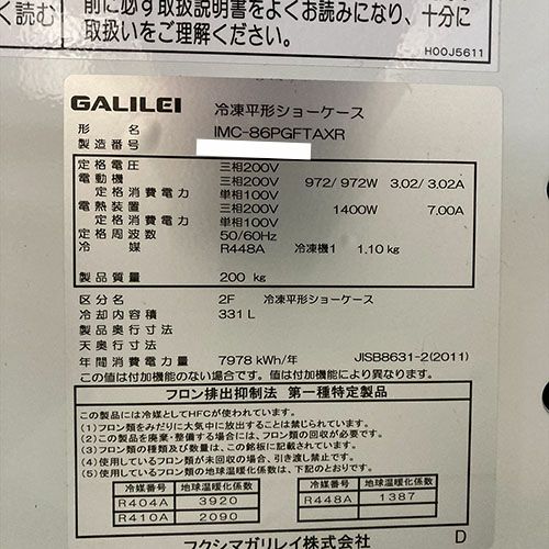 他の画像を見る 【春日井店】 【業界最長1年保証】【中古】平型冷凍オープンショーケース フクシマガリレイ(福島工業) IMC-86PGFTAXR 幅2400×奥行900×高さ850 三相200V 【送料無料】【業務用】【春日井店在庫】 販売価格 ¥ 473,000 税込