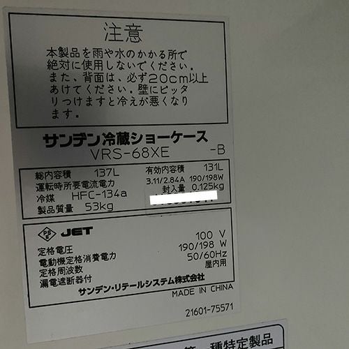 他の画像を見る 直接引取の場合は送料追加なし【製菓製パン堺センター】 【業界最長1年保証】【中古】冷蔵ショーケース サンデン・リテールシステム VRS-68XE 幅630×奥行440×高さ1100 【送料別途見積】【業務用】【製菓製パン堺センター在庫】 販売価格 ¥ 79,200 税込