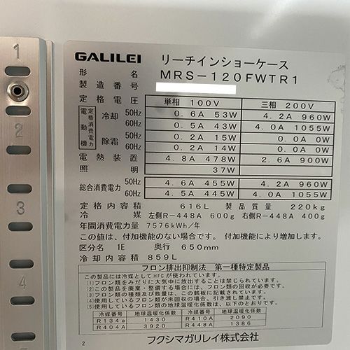 他の画像を見る 直接引取の場合は送料追加なし【製菓製パン堺センター】 【業界最長1年保証】【中古】冷凍リーチインショーケース フクシマガリレイ(福島工業) MRS-120FWTR1 幅1200×奥行650×高さ1900 単相100V/三相200V 【送料別途見積】【業務用】【製菓製パン堺センター在庫】 販売価格 ¥ 495,000 税込