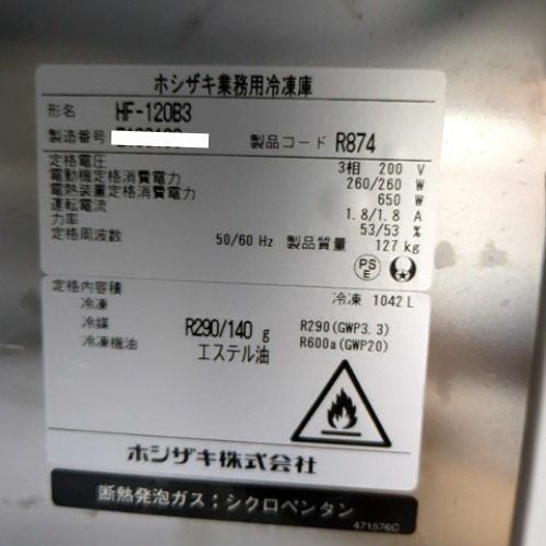 他の画像を見る 直接引取の場合は送料追加なし【野田店】 【業界最長1年保証】【中古】縦型冷凍庫 ホシザキ HF-120B3 幅1200×奥行800×高さ1910 三相200V 【送料別途見積】【業務用】【野田店在庫】 販売価格 ¥ 302,500 税込 詳細を見る