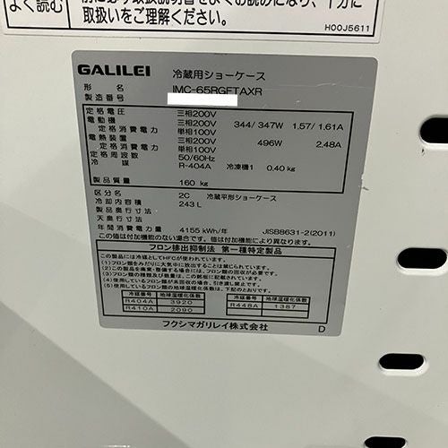 他の画像を見る 【小倉店】 【中古】平型冷蔵オープンショーケース フクシマガリレイ(福島工業) IMC-65RGFTAXR 幅1800×奥行900×高さ850 三相200V 【送料無料】【業務用】【小倉店在庫】 販売価格 ¥ 363,000 税込