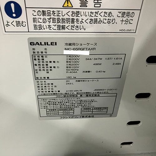 他の画像を見る 直接引取の場合は送料追加なし【長崎店】 【中古】冷凍リーチインショーケース フクシマガリレイ(福島工業) MRS-180FWTRI 幅1800×奥行650×高さ1900 三相200V 【送料別途見積】【業務用】【長崎店在庫】 販売価格 ¥ 863,500 税込