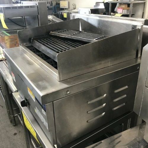 【新品】焼物器・グリラーはこちら 【種類別】焼物器・グリラー 中古ガス下火式焼物器 中古ガス上火式焼物器 中古ガス両面式焼物器 中古炭火焼物器 中古電気焼物器 焼物器・グリラーの選び方 焼物器・グリラーの種類 ガス下火式焼物器 下火式焼物器によっては、赤外線バーナーを使用するものもあり、焼きムラが少なく食材をふっくら、こんがりジューシーに焼き上げます。 焼き物の油や、タレなどが耐熱ガラスに落ち煙が出ますので周りに香ばしいにおいが広がります。 設置スペースを考慮し、コンパクトなサイズのものまで揃えております。 ガス上火式焼物器 上火式焼物器は食材を上部から加熱することにより、焼き具合が確認しやすく、油や汁などが下の汁受皿に落ちますので煙の発生をおさえます。 バーナーが上にあることで焼物器本体も汚れにくく、臭いも出にくいです。 両面式焼物器 両面から同時に焼くことによりスピーディーに調理できます。 食材を裏返す手間がいらず、食材の型くずれがなくきれいにかつ早く焼き上がりサービスを向上させます。 炭火焼物器 焼鳥・串焼・団子など、どんな素材でも美しく焼き上げる炭焼台です。 焼き物の出店やイベントに最適です。本格的にじっくり焼き鳥を焼くなら、炭火式の焼物器もおすすめです。 電気焼物器 火力の立ち上がりが素早く調理をスピーディーに行えます。 煙が出にくいため調理作業もスムーズに店内をクリーンに保ちます。 和食店からレストランまで、幅広い多彩なメニューに対応できます。