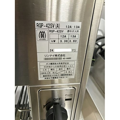 他の画像を見る 直接引取の場合は送料追加なし【長野店】 【中古】上火式焼物器 リンナイ(Rinnai) RGP-42SV 幅530×奥行282×高さ395 都市ガス 【送料別途見積】【業務用】【長野店在庫】 販売価格 ¥ 36,300 税込
