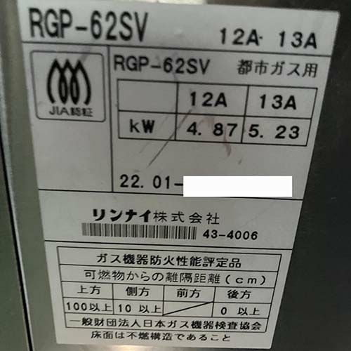 ガス上火式焼物器