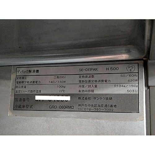 他の画像を見る 【なんば店】 【業界最長1年保証】【中古】解凍保冷庫 サンテツ技研 SE-DEPAK 幅610×奥行800×高さ1950 【送料別途見積】【業務用】【なんば店在庫】 販売価格 ¥ 792,000 税込