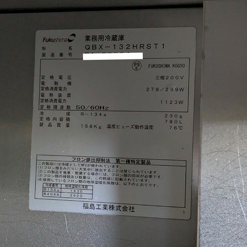 他の画像を見る 直接引取の場合は送料追加なし【製菓製パン堺センター】 【業界最長1年保証】【中古】ホイロ フクシマガリレイ(福島工業) QBX-132HRST1 幅770×奥行945×高さ1920 三相200V 【送料別途見積】【業務用】【製菓製パン堺センター在庫】 販売価格 ¥ 563,200 税込