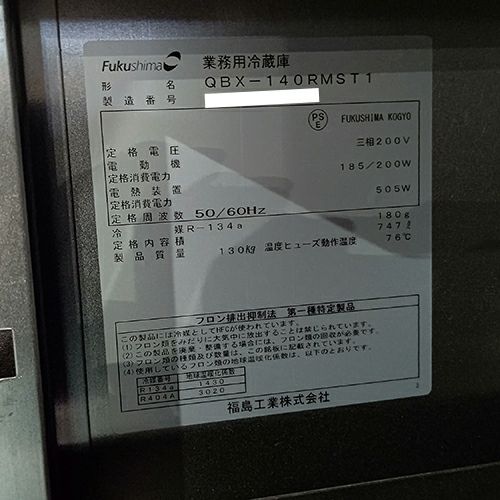 他の画像を見る 直接引取の場合は送料追加なし【三芳中古製パン機械専門店】 【業界最長1年保証】【中古】リターダー フクシマガリレイ(福島工業) QBX-140RMST1 幅780×奥行997×高さ1920 三相200V 【送料別途見積】【業務用】【三芳中古製パン機械専門店在庫】 販売価格 ¥ 356,400 税込