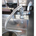 バックガード上に水道直結の蛇口が増設されているため、槽に水を溜めるのが簡単ですが、レバーを倒すと右側に3cmほどはみ出るので右側にスペースが必要です。
