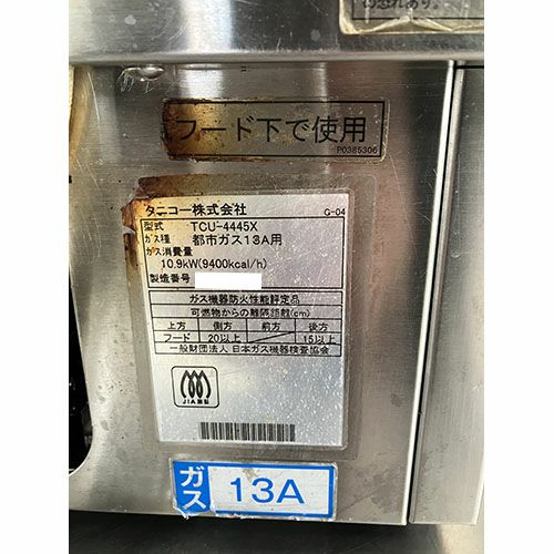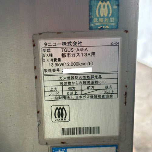 他の画像を見る 直接引取の場合は送料追加なし【TOC五反田】 【業界最長1年保証】【中古】ゆで麺器 タニコー TGUS-A45 幅450×奥行600×高さ850 都市ガス 【送料別途見積】【業務用】【TOC五反田在庫】 販売価格 ¥ 204,490 税込