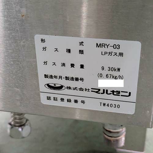 他の画像を見る 直接引取の場合は送料追加なし【大宮店】 【業界最長1年保証】【中古】ゆで麺器 マルゼン MRY-03 幅250×奥行700×高さ860 LPG(プロパンガス) 【送料別途見積】【業務用】【大宮店在庫】 販売価格 ¥ 192,500 税込
