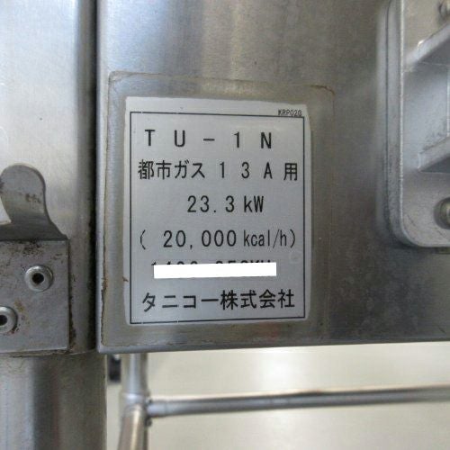 他の画像を見る 直接引取の場合は送料追加なし【水戸店】 【業界最長1年保証】【中古】ゆで窯 タニコー TGK-1 幅900×奥行1150×高さ800 都市ガス 【送料別途見積】【業務用】【水戸店在庫】 販売価格 ¥ 299,900 税込