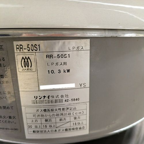 他の画像を見る 直接引取の場合は送料追加なし【宮崎店】 【中古】ガス炊飯器 5.5升 リンナイ(Rinnai) RR-50S1 幅525×奥行481×高さ447 LPG(プロパンガス) 【送料別途見積】【業務用】【宮崎店在庫】 販売価格 ¥ 37,290 税込