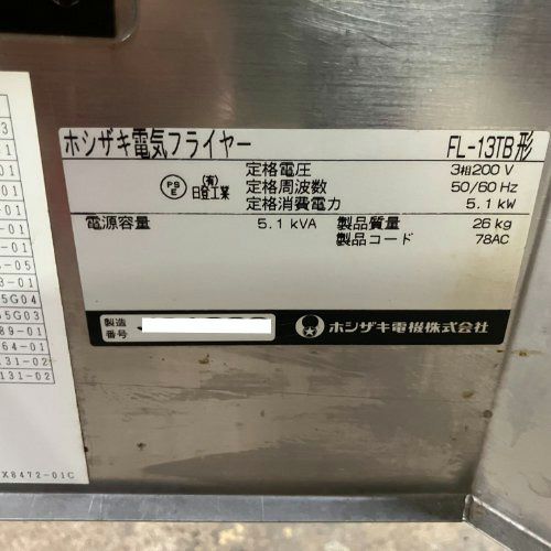 他の画像を見る 直接引取の場合は送料追加なし【金沢厨房館】 【業界最長1年保証】【中古】卓上電気フライヤー ホシザキ FL-13TB 幅350×奥行580×高さ420 三相200V 【送料別途見積】【業務用】【金沢厨房館在庫】 定価 ¥ 548,130 (税込)のところ 販売価格 ¥ 179,001 税込