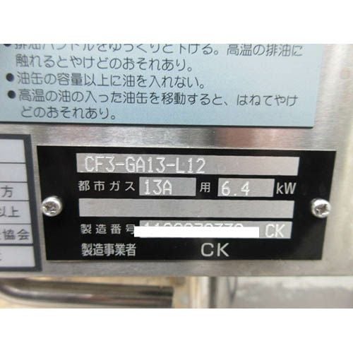 他の画像を見る 委託先様からの配送です。 【中古】一槽ガスフライヤー コメットカトウ CF3-GA13-L12 幅350×奥行600×高さ800/1169 【送料別途見積】【業務用】【委託販売-rks】 定価 ¥ 248,600 (税込)のところ 販売価格 ¥ 73,700 税込