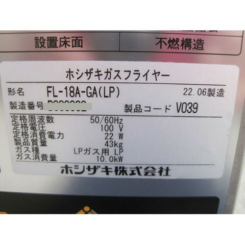 他の画像を見る 委託先様からの配送です。 【中古】ガスフライヤー ホシザキ FL-18A-GA 幅450×奥行598×高さ800 【送料別途見積】【業務用】【委託販売-yck】 販売価格 ¥ 253,000 税込