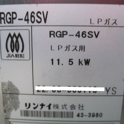 他の画像を見る 委託先様からの配送です。 【中古】グリラー リンナイ(Rinnai) RGP-46SV 幅988×奥行425×高さ602 【送料別途見積】【業務用】【委託販売-yck】 販売価格 ¥ 120,750 税込