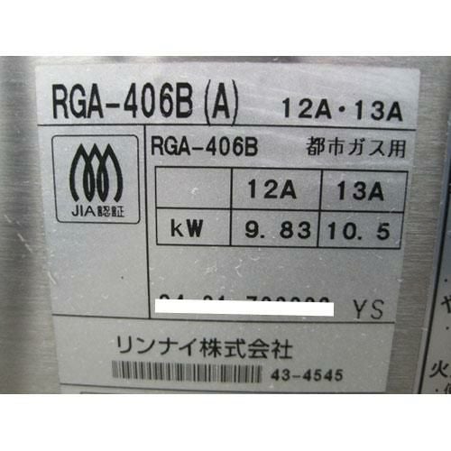 他の画像を見る 委託先様からの配送です。 【中古】グリラー リンナイ(Rinnai) RGA-406B 幅780×奥行580×高さ470 【送料別途見積】【未使用品】【業務用】【委託販売-yck】 販売価格 ¥ 105,799 税込