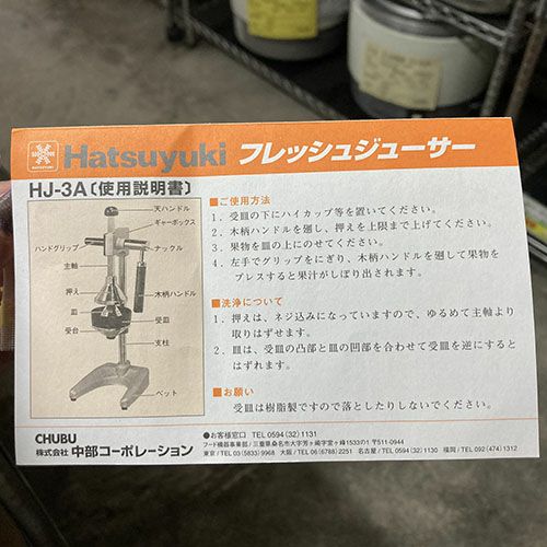 他の画像を見る 直接引取の場合は送料追加なし【大阪淀川店】 【中古】フレッシュジューサー 中部コーポレーション HJ-3A 幅192×奥行215×高さ500 【送料別途見積】【業務用】【大阪淀川店在庫】 販売価格 ¥ 16,500 税込