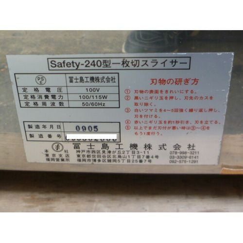 他の画像を見る 委託先様からの配送です。 【中古】スライサー フジシマ Safety-240 幅520×奥行530×高さ470 【送料別途見積】【業務用】【委託販売-k2c】 販売価格 ¥ 108,900 税込
