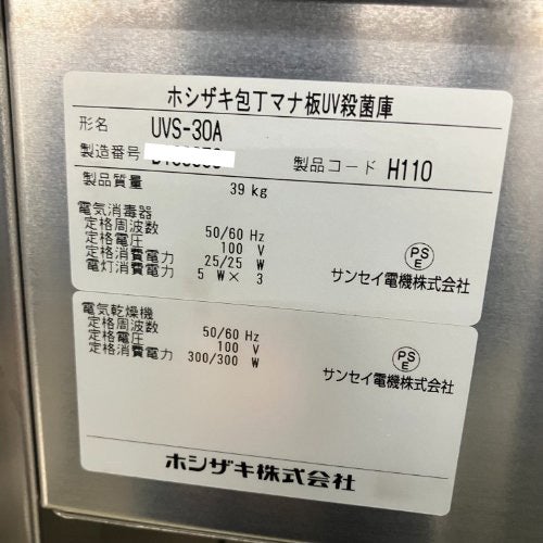 他の画像を見る 直接引取の場合は送料追加なし【金沢厨房館】 【業界最長1年保証】【中古】包丁まな板UV殺菌庫 ホシザキ UVS-30A 幅300×奥行450×高さ1550 【送料別途見積】【業務用】【金沢厨房館在庫】 定価 ¥ 35,970 (税込)のところ 販売価格 ¥ 112,901 税込