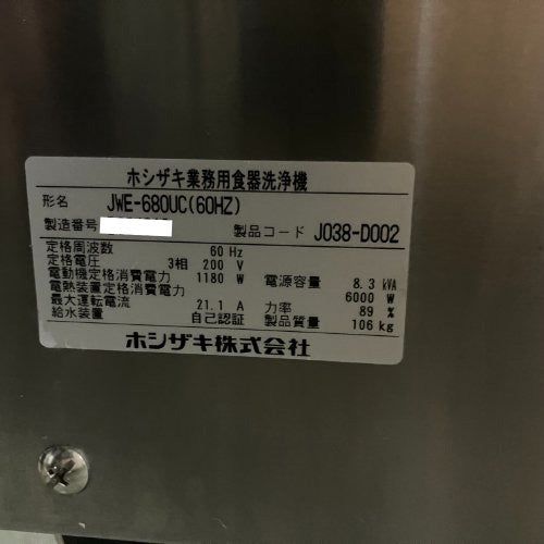 他の画像を見る 直接引取の場合は送料追加なし【金沢厨房館】 【業界最長1年保証】【中古】食器洗浄機 ドアタイプ ホシザキ JWE-680UC 幅640×奥行655×高さ1432 三相200V 【送料別途見積】【業務用】【金沢厨房館在庫】 定価 ¥ 1,954,700 (税込)のところ 販売価格 ¥ 534,900 税込