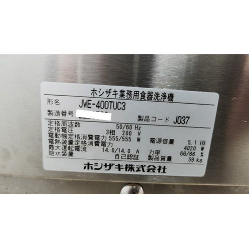 他の画像を見る 直接引取の場合は送料追加なし【滋賀店】 【業界最長1年保証】【中古】食器洗浄機 トップドアタイプ ホシザキ JWE-400FUB3 幅600×奥行600×高さ953 三相200V 60Hz専用 【送料別途見積】【業務用】【滋賀店在庫】 販売価格 ¥ 398,200 税込