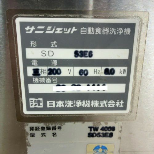 他の画像を見る 直接引取の場合は送料追加なし【静岡店】 【業界最長1年保証】【中古】食器洗浄機 アンダーカウンタータイプ 日本洗浄機 SD53E6 幅600×奥行600×高さ800 三相200V 60Hz専用 【送料別途見積】【業務用】【静岡店在庫】 販売価格 ¥ 347,820 税込