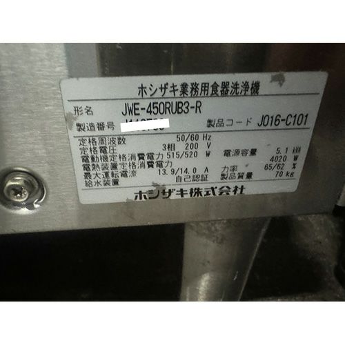 他の画像を見る 直接引取の場合は送料追加なし【新潟店】 【業界最長1年保証】【中古】食器洗浄機 パススルー ホシザキ JWE-450WUB3 幅600×奥行650×高さ1310 三相200V 【送料別途見積】【業務用】【新潟店在庫】 販売価格 ¥ 430,716 税込