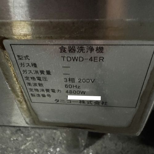 他の画像を見る 直接引取の場合は送料追加なし【福岡店】 【中古】食器洗浄機 ドアタイプ タニコー TDWD-4EB 幅598×奥行620×高さ1420 三相200V 60Hz専用 【送料別途見積】【業務用】【福岡店在庫】 販売価格 ¥ 281,600 税込