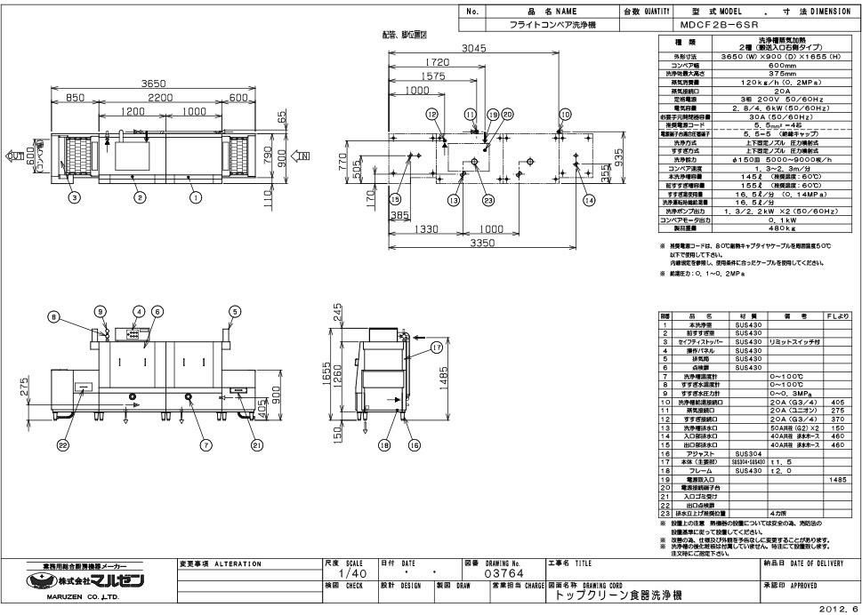 他の画像を見る MDCF2B-6ER 【マルゼン】フライトコンベア洗浄機 幅3650×奥行900×高さ1655(mm) 三相200V 50/60Hz【業務用/新品】【送料別途見積】 定価 ¥ 5,764,000 (税込)のところ 販売価格 ¥ 2,369,644 税込 詳細を見る