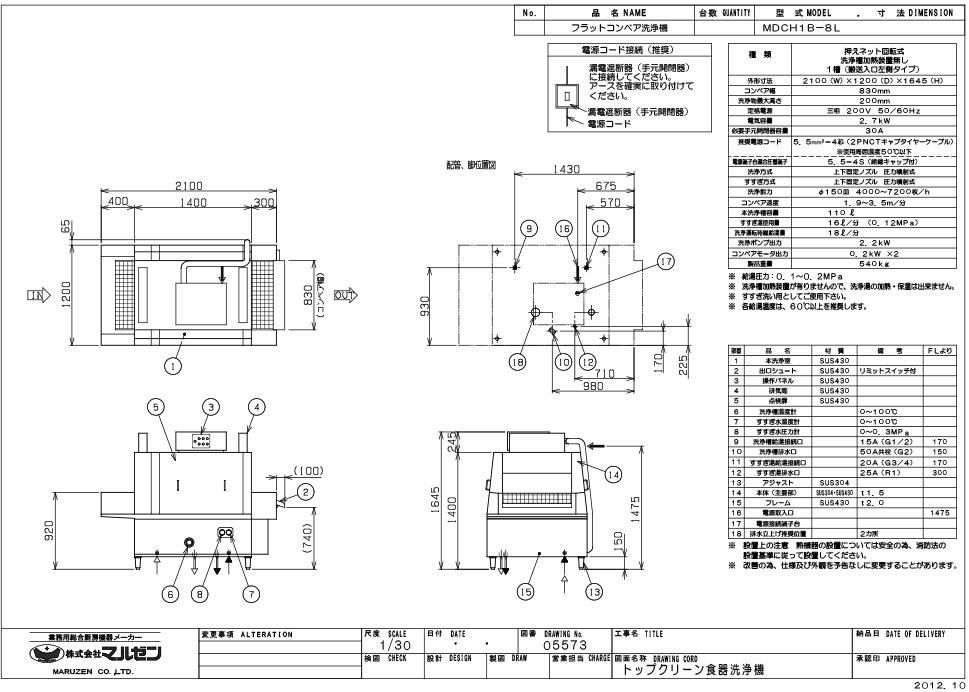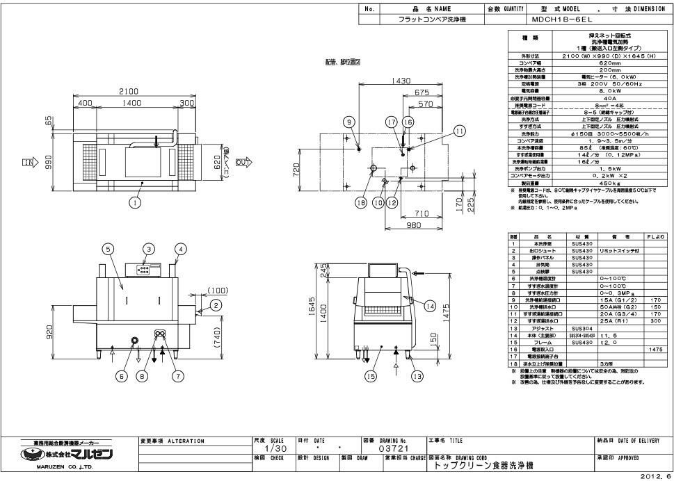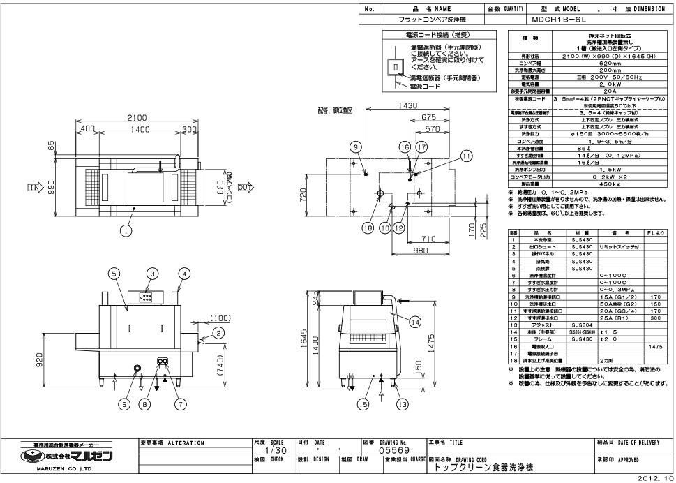 他の画像を見る MDCF1B-6EL 【マルゼン】フライトコンベア洗浄機 幅2650×奥行900×高さ1655(mm) 三相200V 50/60Hz【業務用/新品】【送料別途見積】 定価 ¥ 3,663,000 (税込)のところ 販売価格 ¥ 1,426,643 税込 詳細を見る