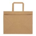 ハンドルは一般的な平紐の幅10mm幅よりも太めの12mm幅を採用しているので、手にやさしく持ちやすい紙袋です。