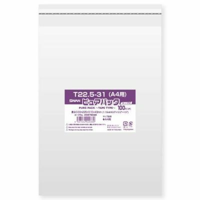商品名:SWAN OPP袋 ピュアパック T22.5-31(A4用) (テープ付き) 1000枚