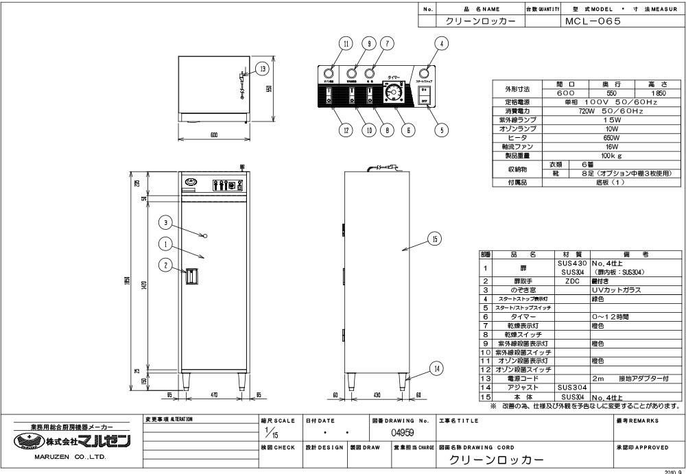 他の画像を見る 【業務用/新品】【マルゼン】クリーンロッカー MCL-105 幅1000×奥行550×高さ1850(mm) 単相 100V 50/60Hz【送料別途見積】 定価 ¥ 1,004,300 (税込)のところ 販売価格 ¥ 576,881 税込 詳細を見る
