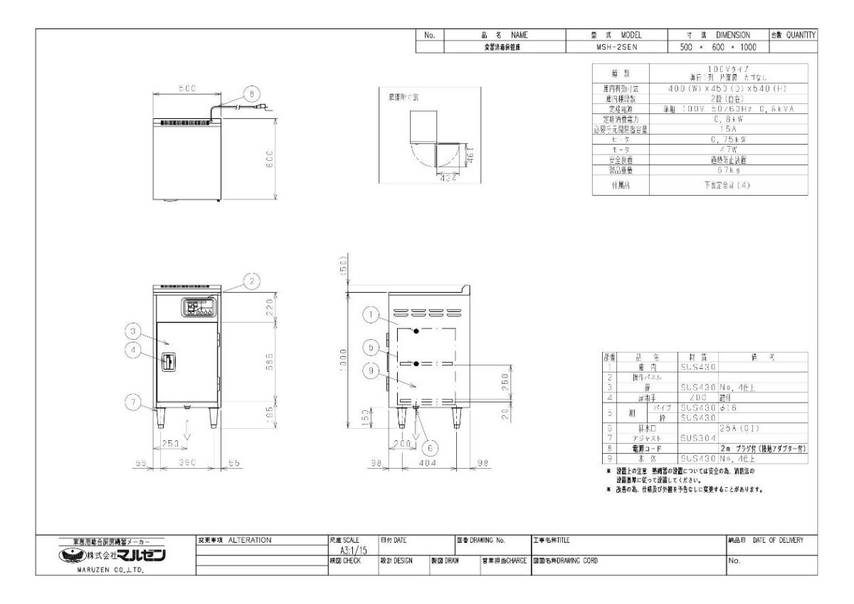 他の画像を見る 食器カゴ付き 奥行1列タイプ 【業務用/新品】【マルゼン】【業務用/新品】【マルゼン】食器消毒保管庫2カゴタイプ 食器カゴ付・排水ホース無 MSH-2SE,MSH-2SEN 幅500×奥行600×高さ1000mm【送料無料】 定価 ¥ 374,000 (税込)のところ 販売価格 ¥ 193,919 税込 詳細を見る
