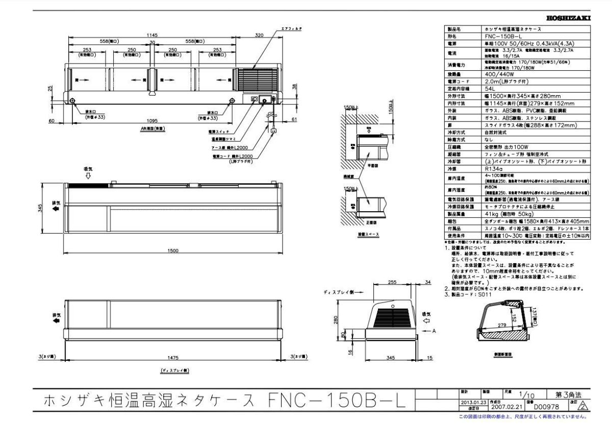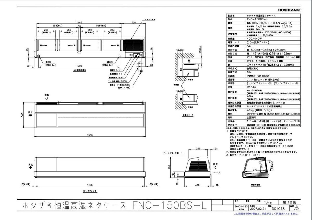 他の画像を見る 【業務用/新品】【ホシザキ】恒温高湿ネタケース FNC-150B-L 幅1500×奥行345×高さ280(mm) 単相100V/送料無料 定価 ¥ 635,800 (税込)のところ 販売価格 ¥ 294,240 税込 詳細を見る