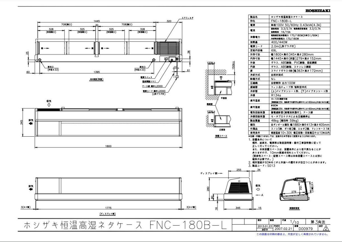 他の画像を見る 【業務用/新品】【ホシザキ】恒温高湿ネタケース FNC-180B-L 幅1800×奥行345×高さ280(mm) 単相100V/送料無料 定価 ¥ 677,600 (税込)のところ 販売価格 ¥ 316,330 税込 詳細を見る