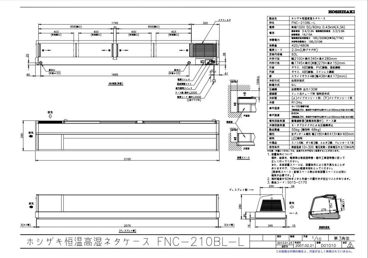 他の画像を見る 【業務用/新品】【ホシザキ】恒温高湿ネタケース FNC-210BL-L 幅2100×奥行345×高さ280(mm) 単相100V/送料無料 定価 ¥ 762,300 (税込)のところ 販売価格 ¥ 363,608 税込 詳細を見る