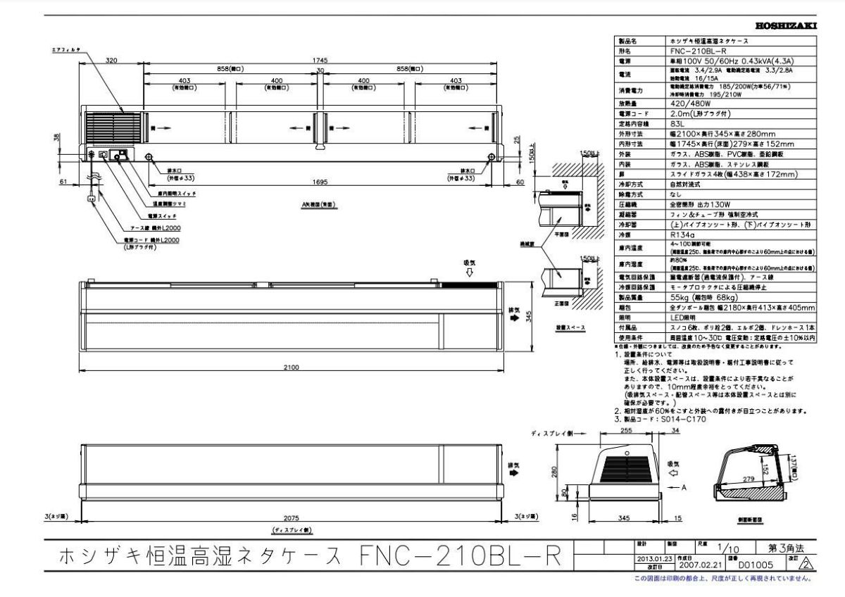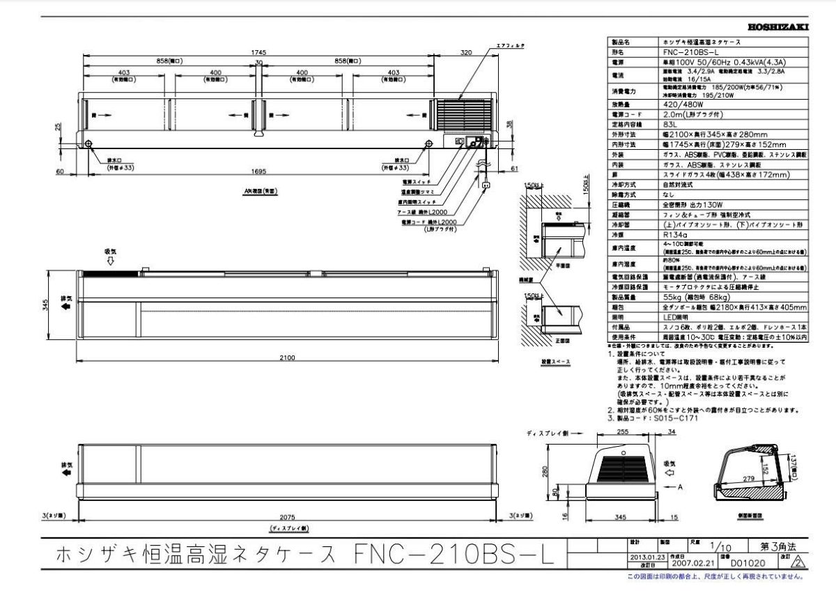 他の画像を見る 【業務用/新品】【ホシザキ】恒温高湿ネタケース FNC-210BS-L 幅2100×奥行345×高さ280(mm) 単相100V/送料無料 定価 ¥ 792,000 (税込)のところ 販売価格 ¥ 377,774 税込 詳細を見る