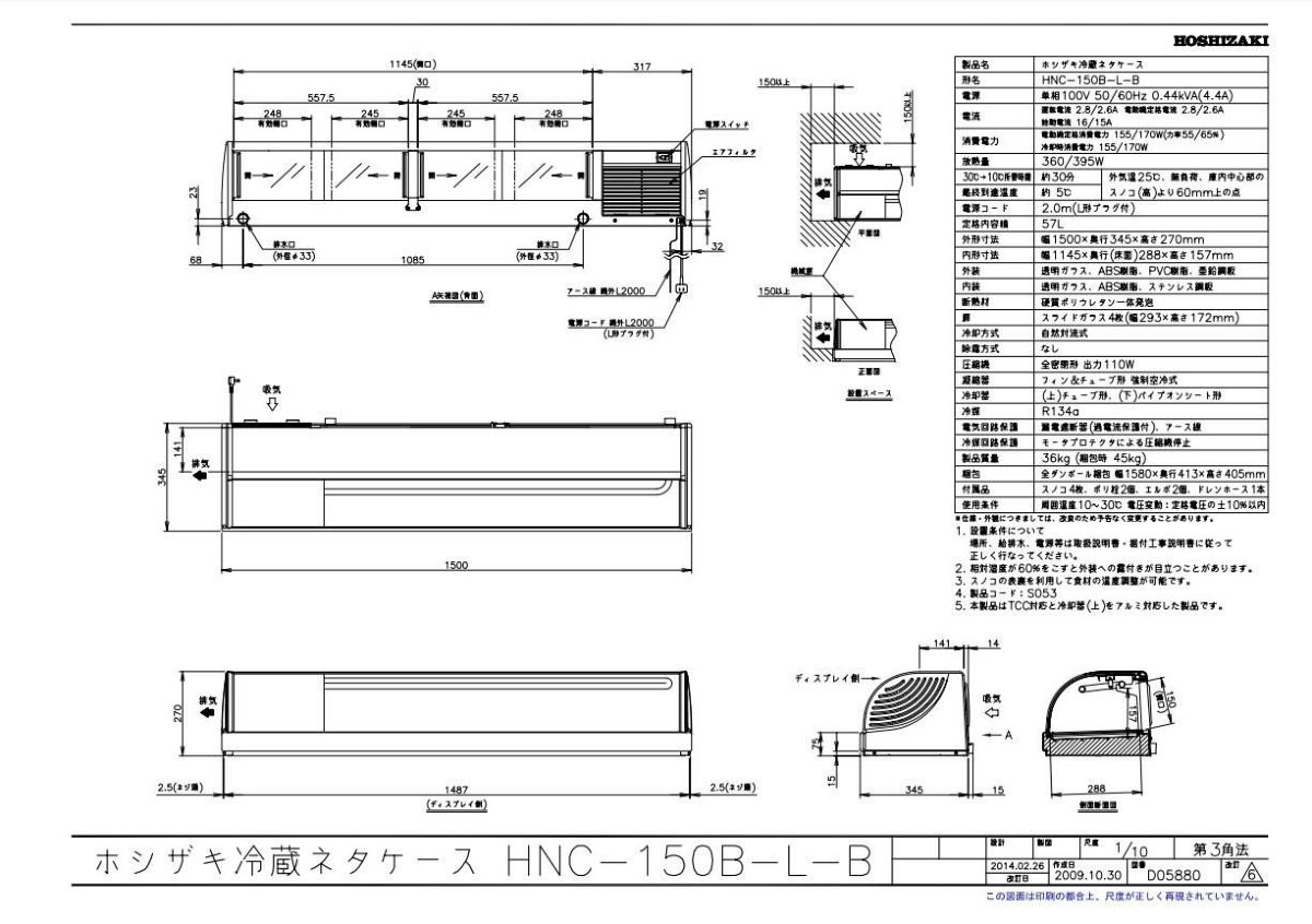 他の画像を見る 【業務用/新品】【ホシザキ】冷蔵ネタケース HNC-150B-L-B 幅1500×奥行345×高さ270(mm) 単相100V/送料無料 定価 ¥ 400,400 (税込)のところ 販売価格 ¥ 168,590 税込 詳細を見る