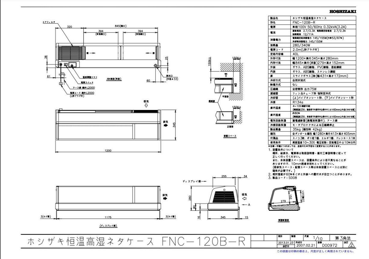 他の画像を見る 【業務用/新品】【ホシザキ】恒温高湿ネタケース FNC-120B-L 幅1200×奥行345×高さ280(mm) 単相100V/送料無料 定価 ¥ 586,300 (税込)のところ 販売価格 ¥ 271,250 税込 詳細を見る