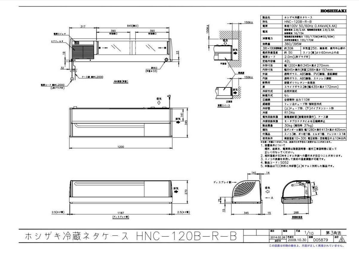 他の画像を見る 【業務用/新品】【ホシザキ】冷蔵ネタケース HNC-120B-R-B 幅1200×奥行345×高さ270(mm) 単相100【送料無料】 定価 ¥ 375,100 (税込)のところ 販売価格 ¥ 157,937 税込 詳細を見る