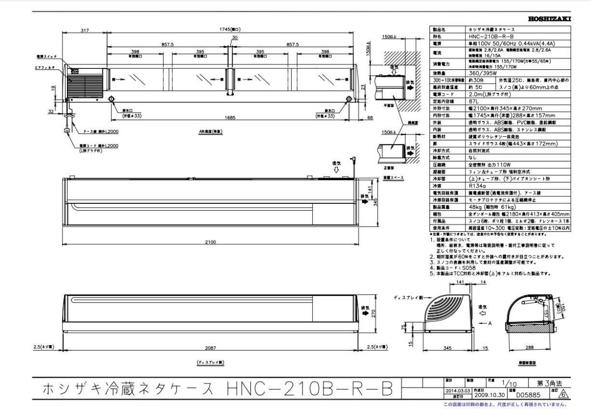 他の画像を見る 【業務用/新品】【ホシザキ】冷蔵ネタケース HNC-210B-L-B 幅2,100×奥行345×高さ270(mm) 単相100V/送料無料 定価 ¥ 447,700 (税込)のところ 販売価格 ¥ 188,506 税込 詳細を見る