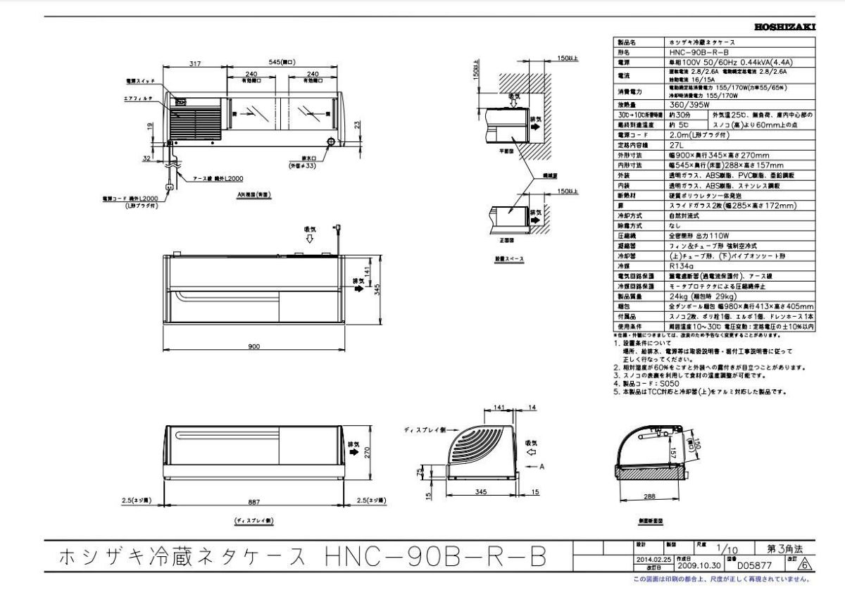 他の画像を見る 【業務用/新品】【ホシザキ】冷蔵ネタケース HNC-90B-R-B 幅900×奥行345×高さ270(mm) 単相100【送料無料】 定価 ¥ 350,900 (税込)のところ 販売価格 ¥ 147,748 税込 詳細を見る